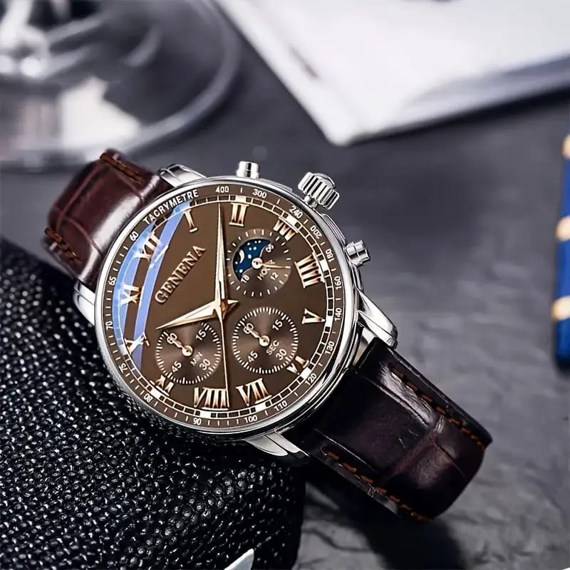 pc Men’S Elegant Business Fashion Quartz Watch, Business Style, Round Case,